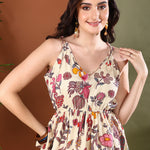 Beige Floral Printed Rayon Short Peplum Top (Pre-Order)