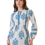 Blue Ethnic Buta Printed Cotton Top (Pre-Order)