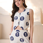 Navy Blue Floral Printed Cotton Flex Peplum Top (Pre-Order)