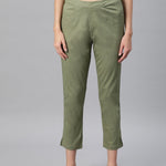 Description - Straight Style Cotton Lycra Fabric Green Color Stretchable Trouser With Pockets