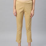 Description - Straight Style Cotton Lycra Fabric Beige Color Stretchable Trouser With Pockets