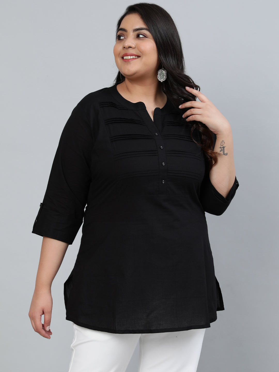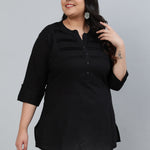 Women Solid Black Plus Size Tunic With Three Quarter Sleeves