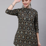 Black Ethnic Printed Straight Tunic With Three Quarter Sleeves