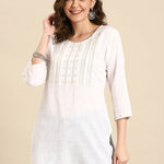 Women Off-White Embroidered Straight Tunic With Three Quarter Sleeves