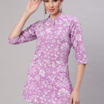 Women Purple Straight Tunic With Three Quarter Sleeves