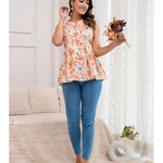 Off White Printed V-Neck Peplum Tunic