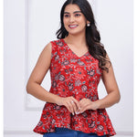 Red Floral Printed Peplum Tunic