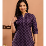 Purple Printed Straight Tunic With Three Quarter Sleeves