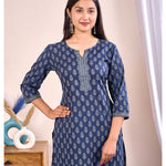 Navy Blue Printed Straight Tunic