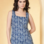 Women Blue Printed Straight Tunic
