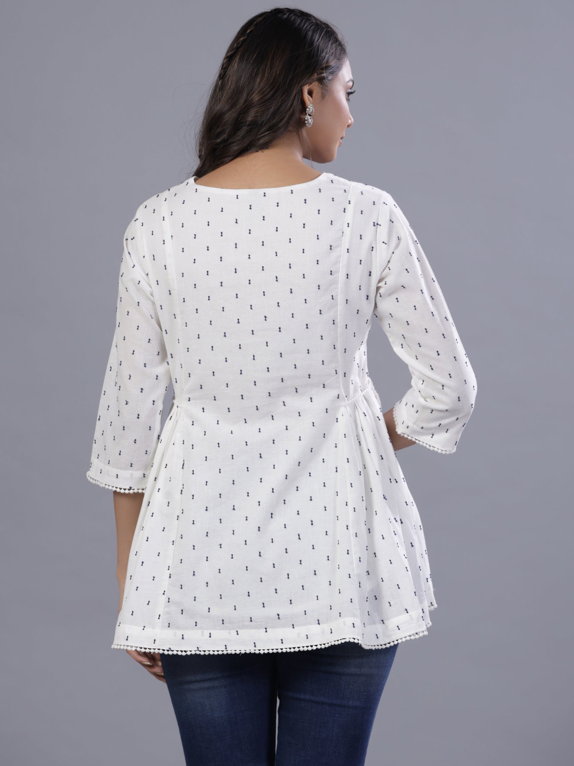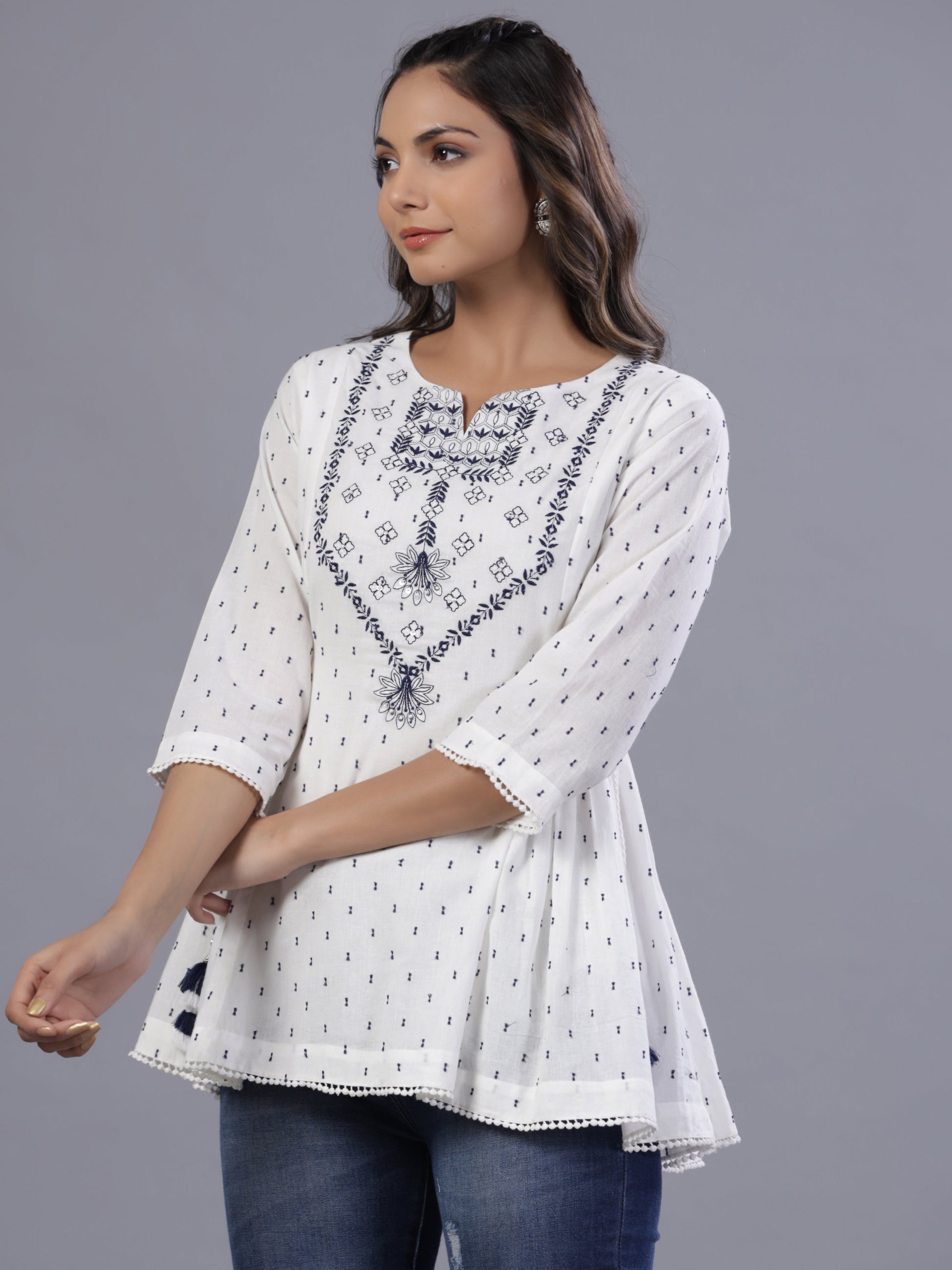 Off-White Cotton Dobby Embroidered Tunic