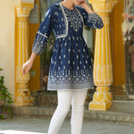 Indigo Cambric Placement Printed Tunic