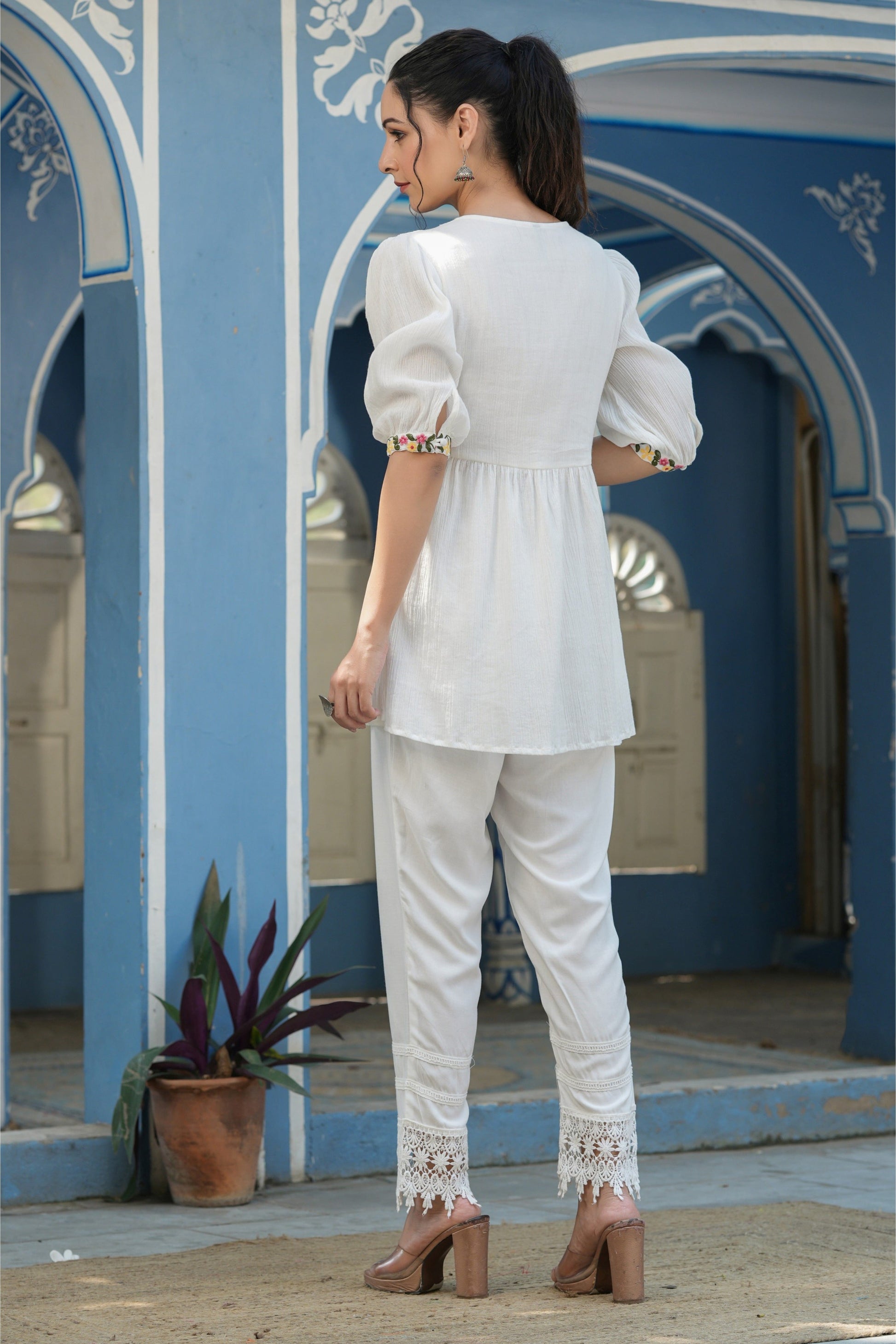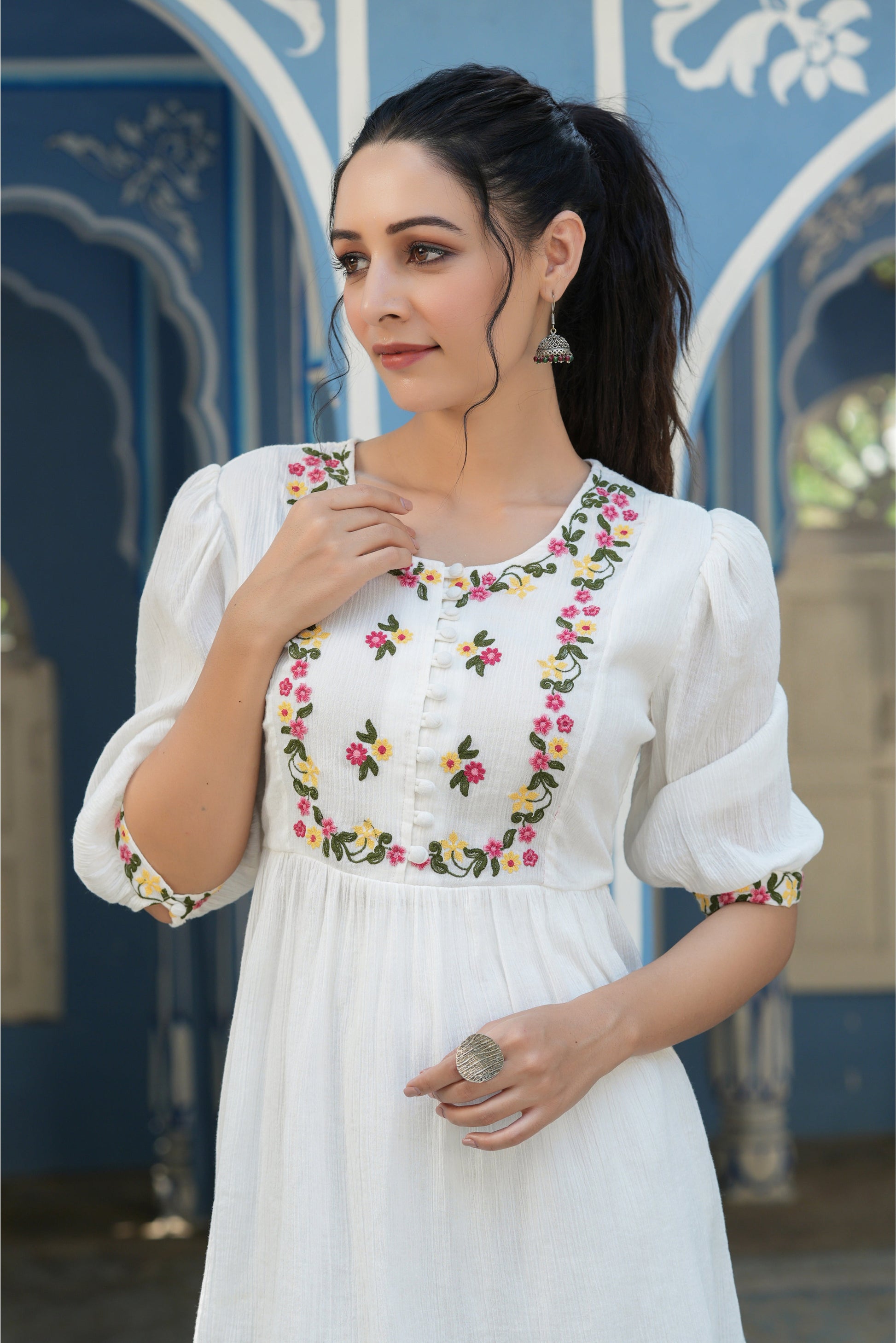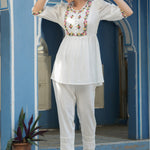 White Cotton Crepe Floral Embroderied Tunic