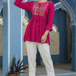 Fuchsia Rayon Crepe Embroidered Straight Tunic
