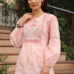 Peach Cotton Dobby Solid Embroidered Straight Tunic