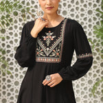 Black Rayon Crepe Solid With Embroidery Straight Tunic