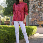 Rust Shantoon Floral Printed High & Low Peplum Tunic