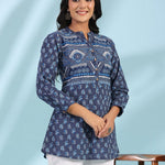 The Madhubala Blue Geometric Printed Pure Cotton Tunic