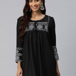 Peplum Style Rayon Fabric Black Color Geometric Embroidered Kurti