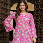 Pink Self Design Cotton Fabric Tunics Three-Quarter Sleeves Square Neck Hip Length