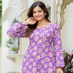Purple Self Design Cotton Fabric Tunics Three-Quarter Sleeves Square Neck Hip Length