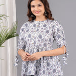 White Self Design Cotton Fabric Tunic 3/4 Sleeves Mandarin Collar Hip Length