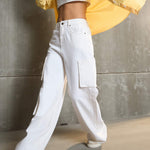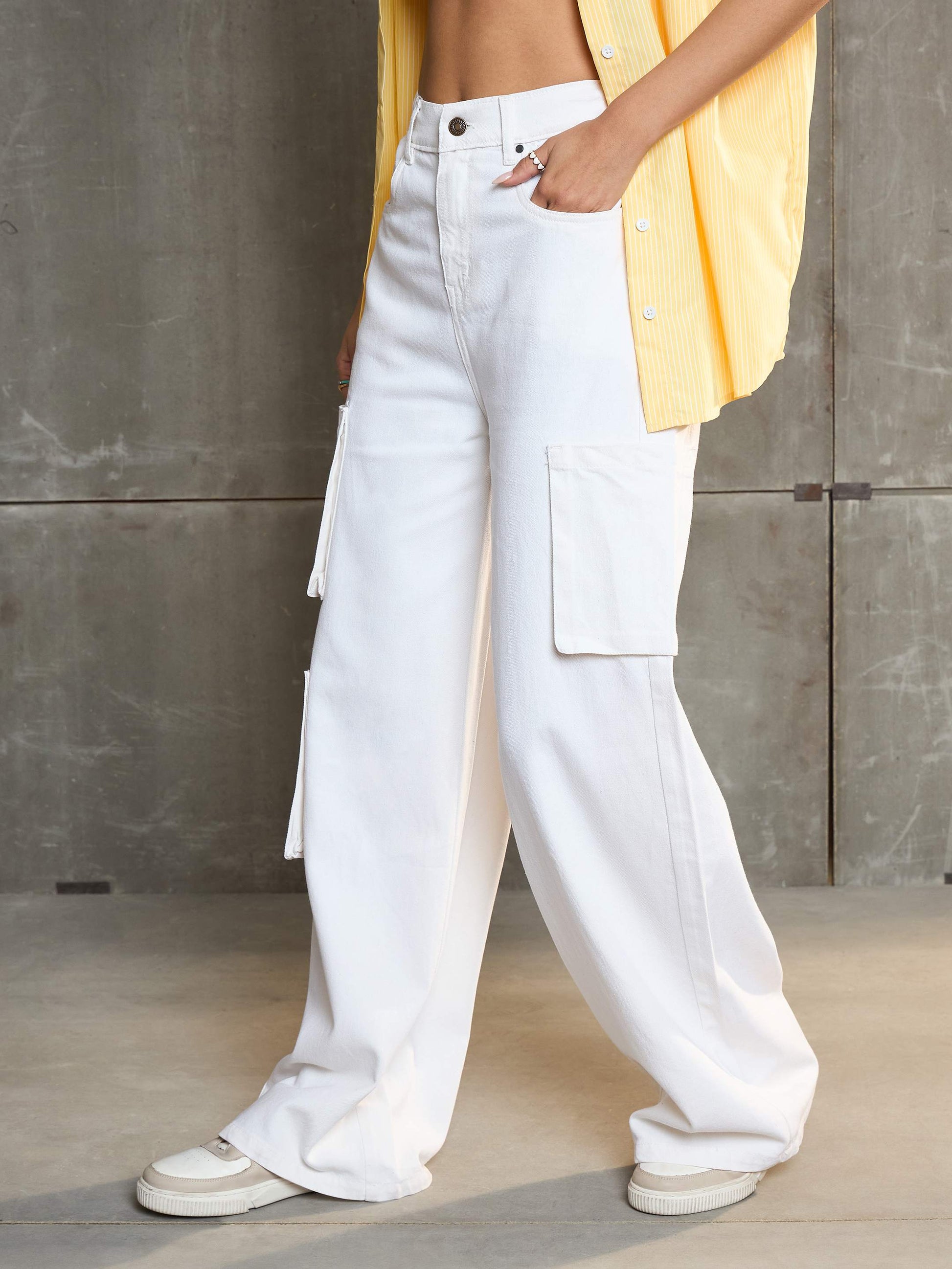 White Box Pocket Straight Premium Jeans, in Denim fabric, Unlined, Full Length, Comfort Fit, Button Closure, Straight Hemline and features Box Pocket Detail