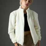 White Drawstring Faux Fur Jacket, in Fur fabric, Unlined, Regular Length, Comfort Fit, Zipper Closure, Straight Hemline and features Drawstring Detail At Hem