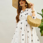 Women White Embroidered Shawl Collar Tiered Dress