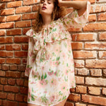 White Floral A-Line Short Dress, in Georgette fabric, Polyknit Lining, Above Knee, Fit & Flare, Tie Closure , Straight Hemline and features Ruffle Detail At Front