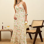 Women White Floral Back-Cut Out Maxi Dress