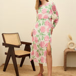 Women White Floral Front Yoke Midi Dress