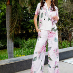 Women White Floral Shawl Collar Top With Pants