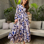 White Floral Tiered Maxi Dress, in Georgette fabric, Poly Knit Lining, Below Knee, Fit & Flare, NA, Flared Hemline and features Tie Detail At Front