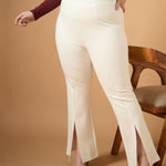White Front Slit Detail Bell Bottom Pants, in Roma fabric, Unlined, Full Length , Comfort Fit , Slip On, Flared Hemline and features Front Slit Detail