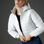 Women White Hooded Crop Bomber Puffer Jacket