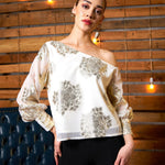 Women White Jacquard One Shoulder Top
