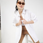 White Poplin Oversize Shirt, in Poplin fabric, Unlined, Regular Length, Oversize Fit, Button Closure, Curved Hemline and features Self Ribbed Design