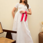 White Poplin Smocked Midi Dress, in Poplin fabric, Unlined, Below Knee, Fit & Flare, NA, Flared Hemline and features Smocking At Chest