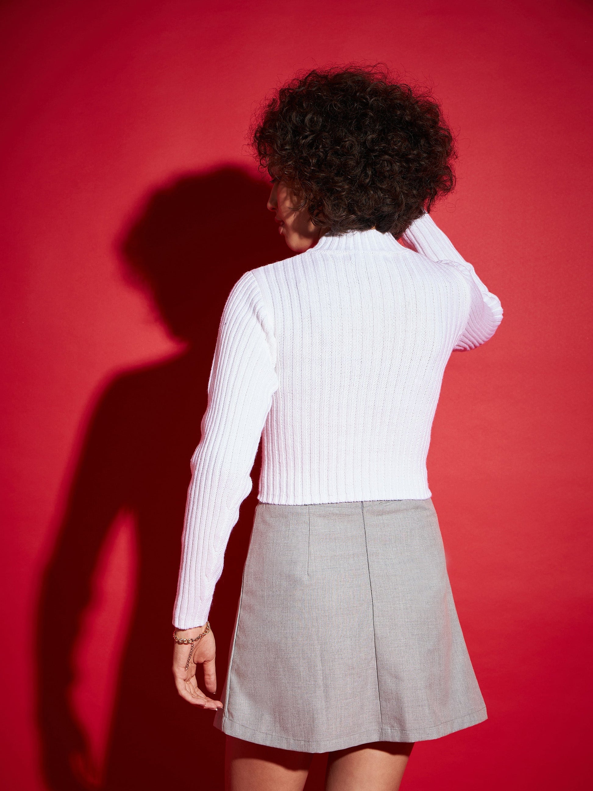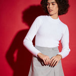White Rib High Neck Full Sleeves Sweater, in Viscose Poly Rib fabric, Unlined, Regular Length, Slim Fit, No Closure, Straight Hemline and features High Neck