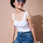 White Rib Sleeveless Top, in Rib fabric, Unlined, Regular Length, Comfort Fit, No Closure, Straight Hemline and features Square Neck Detail