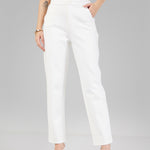 White Roma Tapered Pants, in Roma fabric, Unlined, Ankle Length, Slim Fit, Button Closure, Straight Hemline and features Flap Pockets At Front