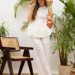 Women White Schiffli Tiered Shirt With Palazzo Pants