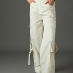 White Twill Pocket Loop Detail Cargo Pants, in Cotton Twill fabric, Unlined, Full Length, Straight Fit , Zipper Closure, Straight Hemline and features Loop Detail At Pockets