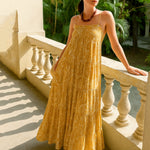Women Yellow Floral Strappy Smocked Maxi Dress