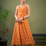 Yellow Floral Sweetheart Neck Anarkali Kurta, in Georgette fabric, Butter Crepe Lining, Maxi Length, Fit & Flare, Drawstring Closure, Flared Hemline and features Dori Detail At Back
