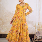 Yellow Floral Sweetheart Neck Anarkali Kurta , in Georgette fabric, Butter Crepe Lining, Full Length, Fit & Flare , Drawstring Closure, Flared Hemline and features Dori Detail At Back