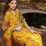 Women Yellow Floral V Neck Kurta With Pencil Pants & Dupatta