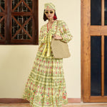 Yellow Floral Wrap Top With Tiered Skirt , in Cotton Cambric fabric, Cotton Voile, Crop Length , Fit & Flare, No Closure, Straight Hemline and features Lace Detail At Front Neck