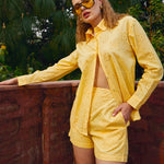 Women Yellow Schiffli Full Sleeve Regular Shirt